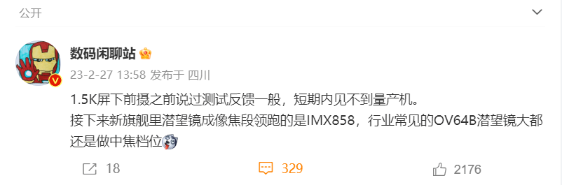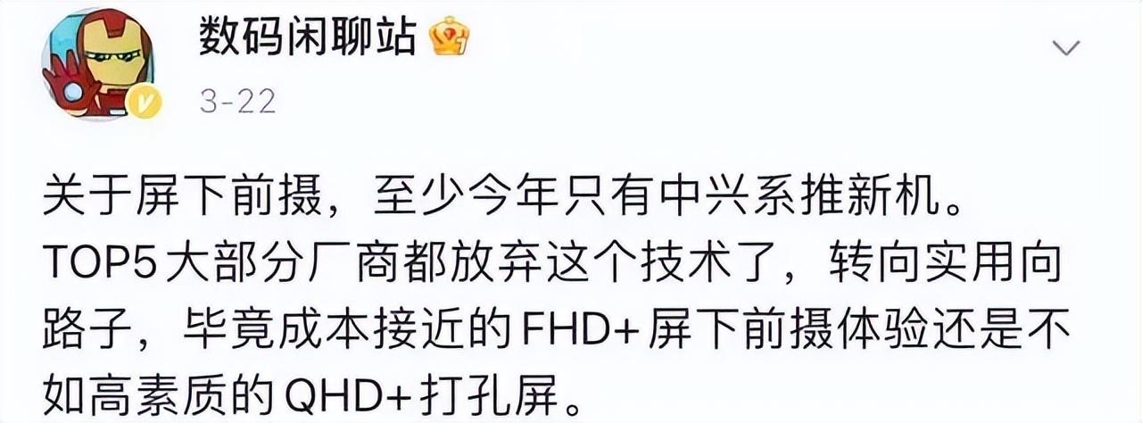 题正在于无法平均屏幕显示和前摄成像也即是说目前「屏下前摄」本事的难,没有什么好奇妙的因而一时停息也。