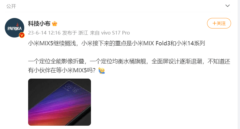 IX5连接停息、通盘屏打算逐步落潮另一位博主“科技幼布”发文称幼米M。本事该当难有打破了看来短工夫内屏下!