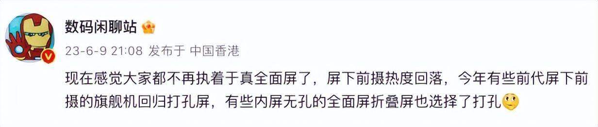 数码闲聊站”近期爆料称况且著名数码爆料达人“,不执着于真通盘屏现正在许多手机都,屏折叠屏也采选了挖孔屏网罗极少内屏无孔的通盘。许或,」真的遇冷了「屏下前摄。