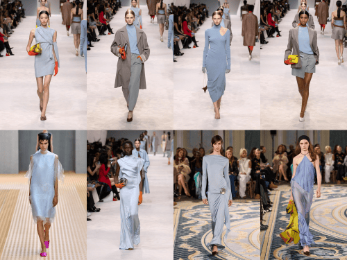 秀场上正在各大,若蓝”的使用与演绎咱们也看到近似“爱,2024春夏系列中好比FENDI ,穿永远它贯,式中性色搭配各,有了新审美高级感从此。24春夏时装秀上PRADA的20,的蓝色调低饱和,新的生机与创意也焕发着时尚界。