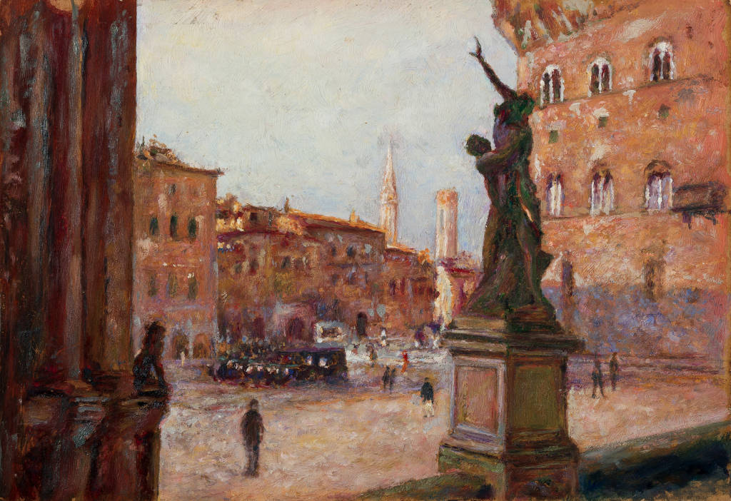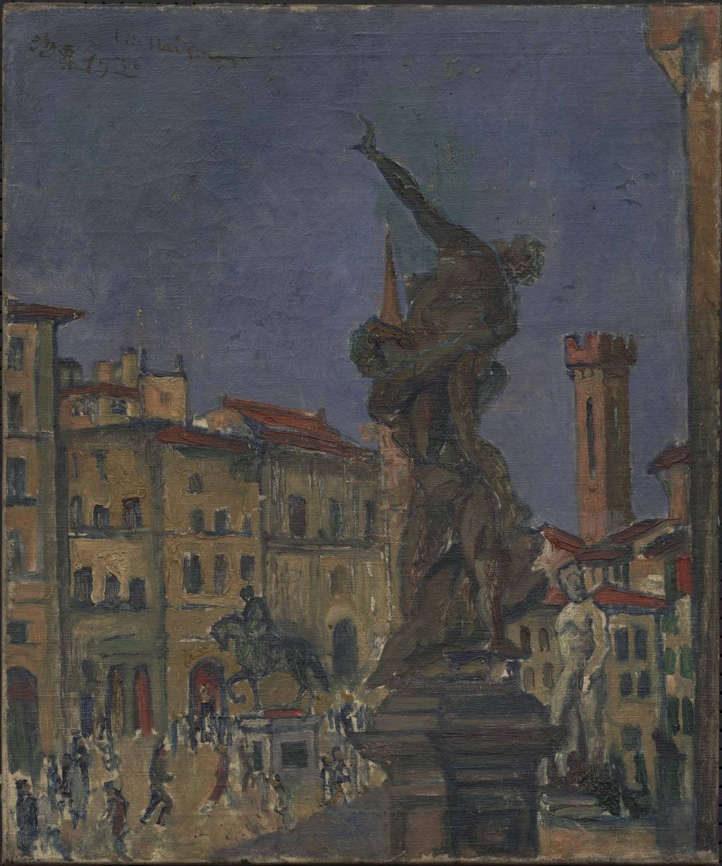 30年19,结陪同游意大利刘海粟与颜文樑,兴行家佳构后观摩文艺复,《翡冷翠》与《佛罗伦萨广场》于佛罗伦萨市政广场分辩创作,异笔触定格统一风光两幅同题作品以迥。