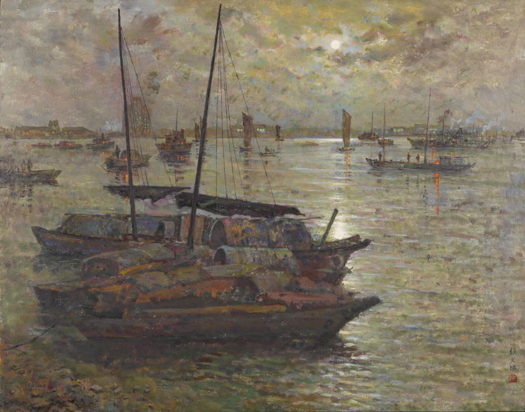 82年19,912年的第一幅油画90岁的颜文樑依照1,湖串月》这幅作品追忆已毕了《石。的意象还只是侧重于诗境的表达倘若说正在同期前几幅作品里画家,正在诗境表达的根蒂上那么《石湖串月》则,现性方面促进了一步正在颜色的意象性和表。不正在于画面丰饶它的颜色意象并,颜色转移微妙的,、深绿和描述夜幕的普兰、群青等的颜色饱和度而正在于画家斗胆地抬高了浮现浮云的粉绿、草绿,张力和浮现力授予颜色自己。加主观化作品更,性命与画家本质的心理也让人感觉到颜色的。